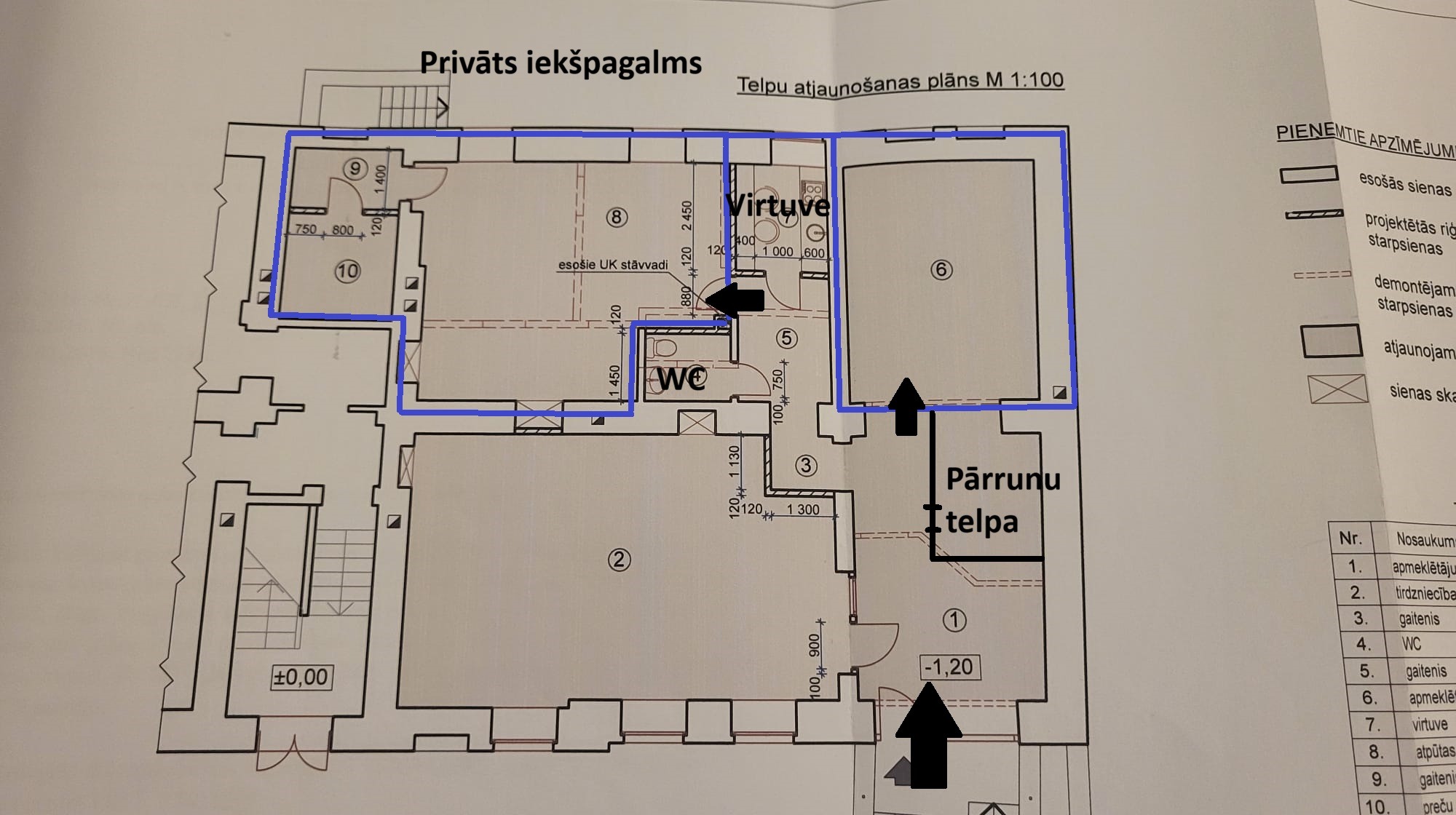 Plānojums: 2 izolētas darba telpa, koplietošanas virtuves zona, ja nepieciešams ir pieejama koplietošanas pārrunu telpa, WC.